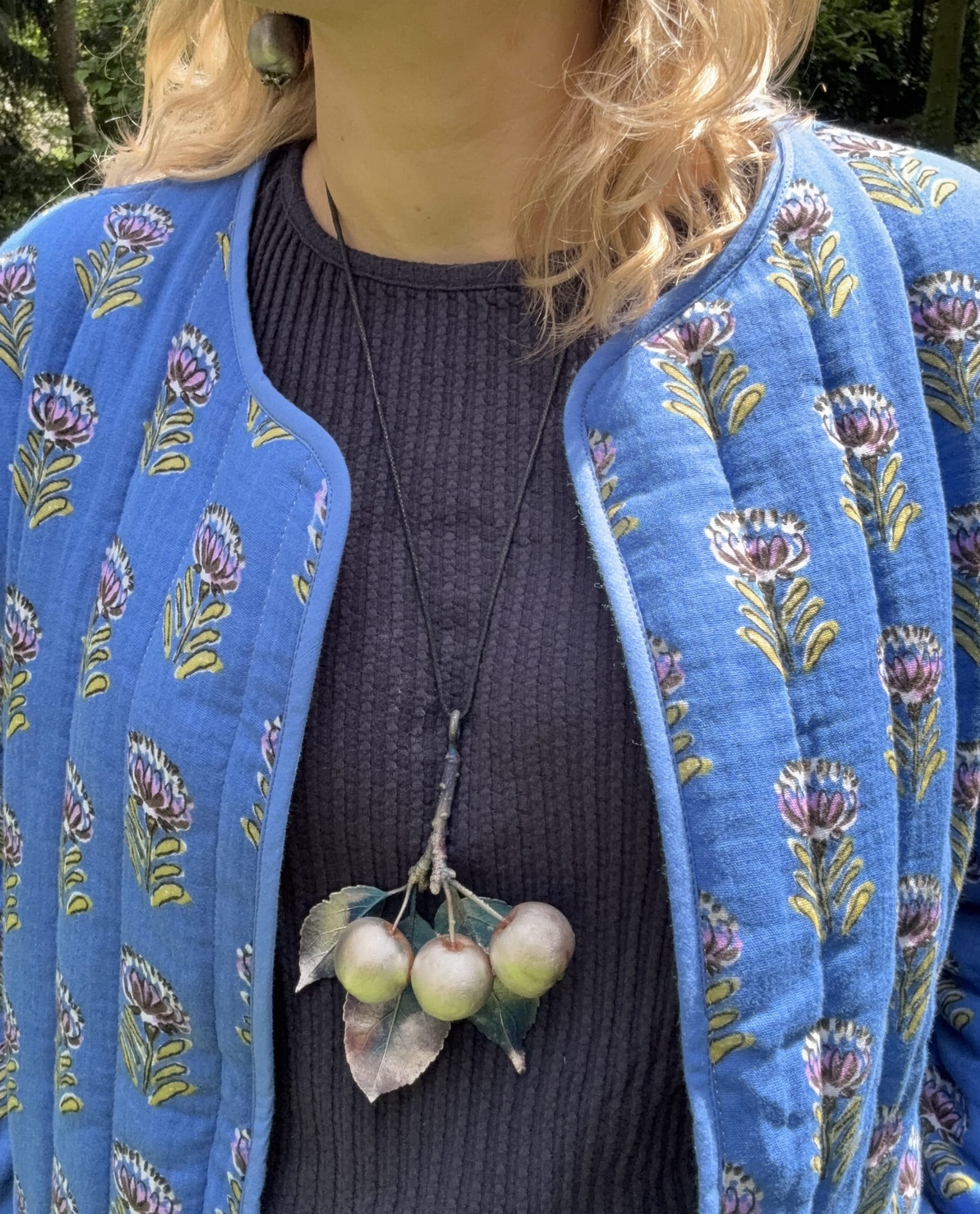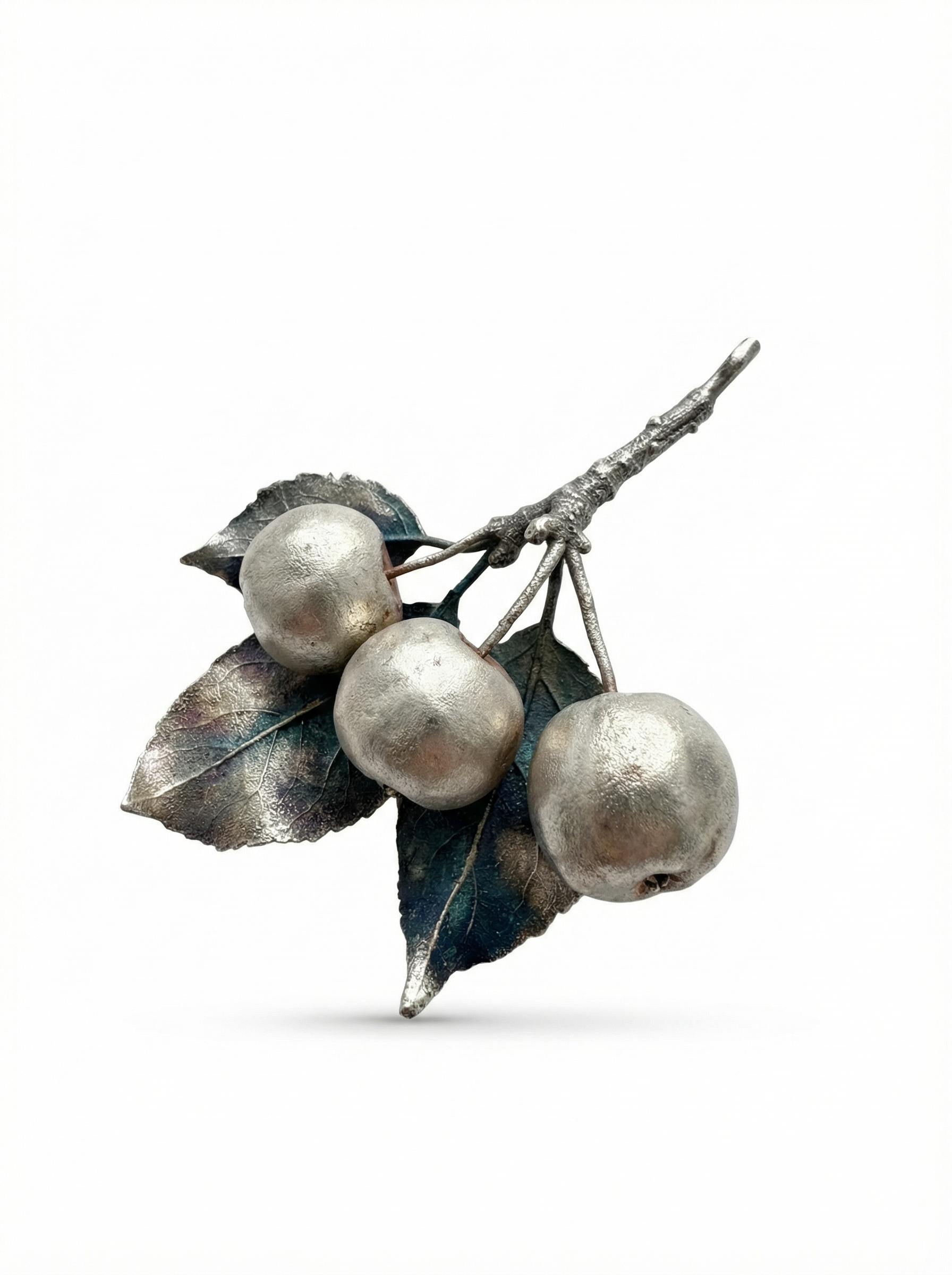 Wisior z gałązki jabłka jest unikatową, jedyną w swoim rodzaju ozdobą z naszej kolekcji Wild Fruits; owocową, dużą przywieszką , która jest zaskakującym dodatkiem do każdej stylizacji. Plaster jabłka to artystyczne rękodzieło, stworzone z wykorzystaniem autorskich technik wykonania. Wnętrze wyrobu to prawdziwa, utwardzona miedzią gałązka i owoce jabłka. Wierzchnia warstwa zaś pokryta jest czystym oksydowanym srebrem. Wisior najlepiej prezentuje się na dołączonym czarnym rzemyku lub metalowej żyłce - obręczy. Czas przygotowania do wysyłki do 3 dni roboczych, ale staramy się wysłać jak najszybciej. Odbiór osobisty możliwy na terenie Łodzi (sklep stacjonarny Lukato Showroom, Łódź, ul. Narutowicza 4).