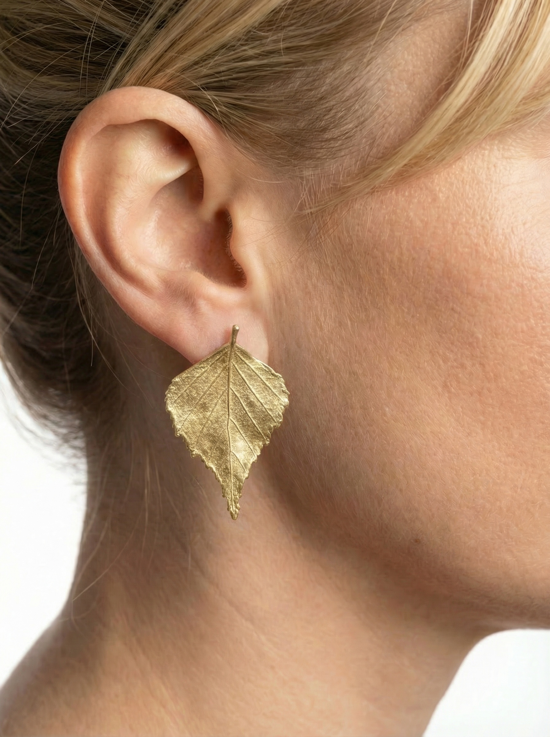 Kolczyki są artystycznym rękodziełem, które charakteryzuje stosowanie autorskich technik wykonania. Wnętrze wyrobu wykonane jest z mosiądzu jubilerskiego na bazie prawdziwych listków brzozy (4 cm długości). Specjalistyczny lakier, którym są pokryte zabezpiecza je, dzięki czemu nie zmienią koloru ani nie stracą swojego połysku. Warto jednak pamiętać o tym, żeby perfumować się przed założeniem kolczyków.