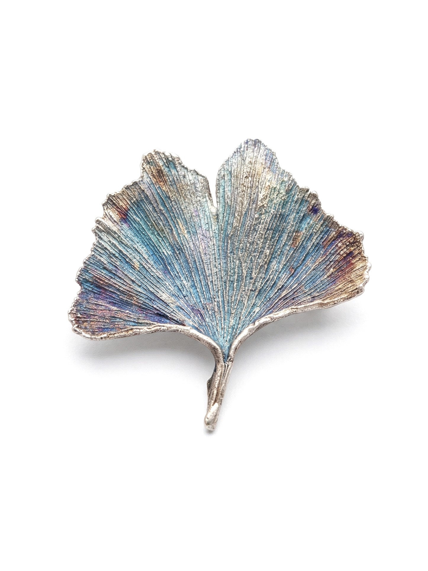 W tej broszce zachowaliśmy prawdziwy liść ginkgo biloba. Dzięki procesowi galwanizacji jego naturalna struktura została utrwalona w metalu, co pozwoliło zachować wszystkie detale rośliny.